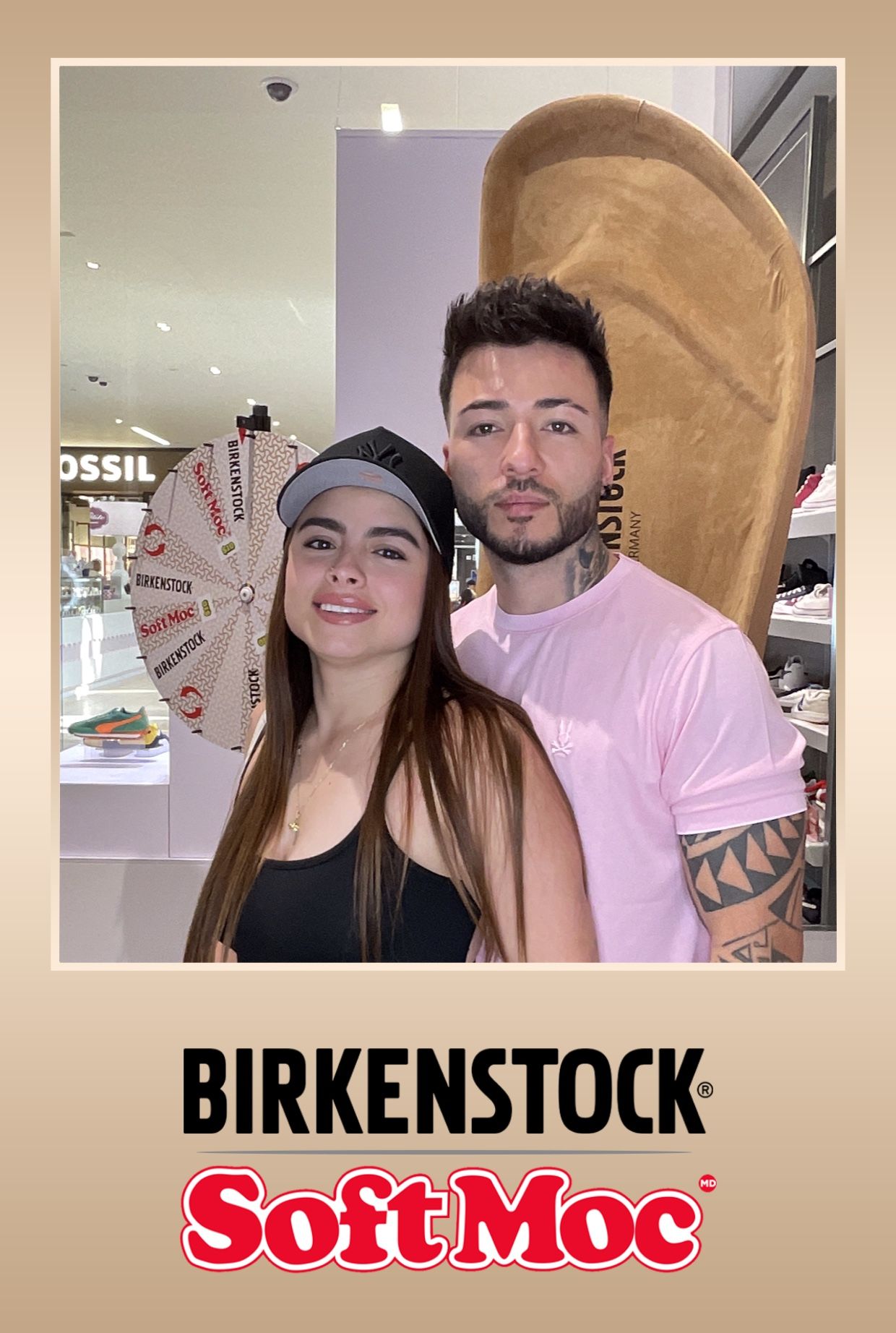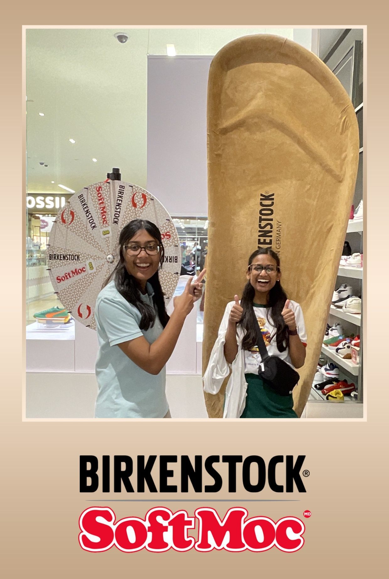 The scene was set with a giant Birkenstock shoe installation—an oversized, eye-catching piece that immediately drew in curious shoppers. It became more than a display—it turned into a photo magnet and conversation starter. Positioned right next to this massive shoe was the exciting Spin the Wheel game, offering shoppers a chance to win exclusive Birkenstock prizes, discounts, and other branded goodies. The combination of these two elements created a fun and dynamic photo background that encouraged interaction and playfulness.